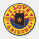 Amo el mapa y la bandera del estado de Arizona. Tomando su inspiración de la bandera del estado, este diseño presenta un esquema de color rojo, amarillo, naranja y azul, además de corazones rojos. Esto enmarca elementos clave de la bandera del estado, incluyendo las vigas de sol y la estrella, y una silueta del mapa del estado. Con una tipografía genial y angustiada que incluye la frase 'I LOVE ARIZONA'.