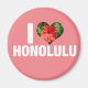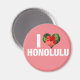 Me encanta el imán Honolulu con un fondo rosado de melocotón bonito. Una flor de hibiscos rojos en forma de corazón adorable decora este bonito diseño para sus vacaciones de verano en la playa de Hawái.