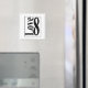Simple imán blanco y negro que tiene "Amor 8" o más bien "Amor Infinito" en una caja.
