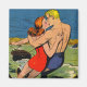 Colorido ilustracion de una pareja besándose mientras esquiaba detrás de un bote. De una historieta vintage