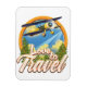 Logotipo de estilo retro Love to Travel con un gran avión.