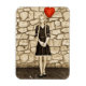 Representación digital en 3D de un bello chica adolescente sosteniendo un globo rojo en forma de corazón sobre un fondo de pared de piedra, foto antigua y efecto de color. Un regalo perfecto para el El día de San Valentín