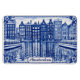 Amsterdam canal houses fridge magnet in Delft Blue style. Generative content with photography by Velvet Escape.
