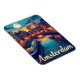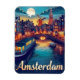 Disfrute de la belleza de Ámsterdam durante la noche con nuestro viaje y ilustracion. Este cautivador artículo capta los canales icónicos de la ciudad, iluminados por el cálido resplandor de las luces y reflecciones que bailan en el agua. Podrá pasear por los puentes históricos, disfrutar del ambiente de los acogedores cafés junto al canal y sentir la magia del encanto nocturno de Ámsterdam. Embarque en un viaje a los Países Bajos, donde cada esquina del canal es un lienzo de esplendor nocturno.