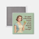 Update the old saying with a hilarious twist! This "An apple a day keeps anyone away if you throw it hard enough" magnet features a smiling retro-style housewife holding a green apple, perfectly contrasting the sweet imagery with the snarky caption.