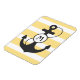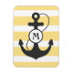 Rayas náuticas amarillas y blancas con ancla gris de carbón vegetal y monograma.