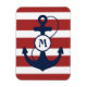 Bandas náuticas rojas y blancas con ancla azul marino y monograma.