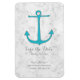 Perfecto para un boda de temática náutica es este Rustic Anchor Salvar el imán Date Flexi con un ancla turquesa sobre un fondo de mármol gris claro. Este clásico y simple guardar el imán de fecha es fácil de personalizar con los detalles de su boda. Para obtener más opciones de personalización, haga clic en Personalizar.