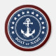 Elegante imán redondo rojo, blanco y azul con un ancla náutica personalizado con 13 estrellas y su nombre de barco personalizado, nombre de familia u otro texto deseado. Hace un gran regalo para cualquier ocasión.