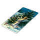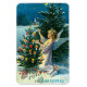 Un hermoso imán vintage de Navidades flexibles con un ángel decorando un árbol de Navidad.