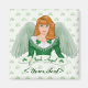 Ángel irlandés bonito en verde con alas verdes pálidas. Está sosteniendo un cartel que dice Ángel Irlandés. Acentos de Shamrock. Texto personalizado.