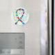 El imán de ángel de la guardiana presenta la pintura de un ángel de la cinta de conciencia del rompecabezas del autismo. El arte de la cinta de ángel de conciencia sobre el autismo de rompecabezas se puede personalizar con mensajes personalizados para hacer imanes de gran causa para recaudadores de fondos, regalos de concientización u otros eventos o ocasiones especiales.