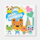 Amigos animales, amables, coloridos y divertidos, diseñan camisetas, bibs, mantas, paños para la pared, juegos de baño, relojes de pared, bolsas, tazas, aguijonetas y más detalles como un búho, oso, ardilla, conejo conejo y rana, un sol, arco iris, corazones y nube con texto que lee ¡Buenos amigos!