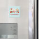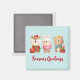 Un imán con un bonito ilustracion con un conejo, un oso y un ciervo vestidos con ropa de fiesta. Adorable y caprichoso.