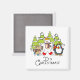 Un lindo y colorido imán de diseño de vacaciones para Navidades con un oso polar, pingüino y ratón, todo con bufandas y patines de hielo con árboles cubiertos de nieve y texto que dice ¡Son Navidades!