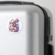 Un lindo chica de anime en un unicornio con arcos de lluvia, mariposas, flores y globos con pegatinas de la fiesta de los chicas rosados, azules y morados. En morado, rosa y azul.