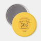 Muy bonito imán de aniversario 50 bodas amarillo dorado. Los nombres de la pareja están escritos sobre el 50 aniversario en un círculo de oro amarillo. Las rosas amarillas delimitan la parte superior del círculo y dos rosas están en la parte inferior. Un patrón geométrico micro amarillo rodea el centro de oro más profundo. Usa este favor del partido pegatina del 50 aniversario boda.