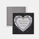 Corazón plateado delineado con púrpura sobre fondo negro. Personalice con su propia información. También hace un bonito recuerdo de bodas. Si necesita ayuda, por favor envíe un correo electrónico a shutterbug600@yahoo.com