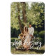Imán de fotos personalizadas del aniversario de la boda con su foto romántica y "feliz aniversario" con "Mr. y la Sra. (su nombre)" en tipografía mixta.