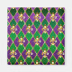 joyas, fondo del Mardi Gras de rhombus violeta y verde, lirios dorados decorados.