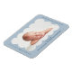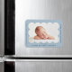 Imán de anuncio de nacimiento moderno con la foto de tu bebé dentro de un marco escalonado azul claro. Personaliza el imán de anuncio de nacimiento azul claro agregando el nombre de tu bebé y otra información en letra navy.