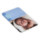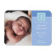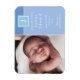 Imán de anuncio de nacimiento de bebé niño con foto y monograma para presentar a su hermoso recién nacido. Con una foto del bebé, inicial del monograma y estadísticas de nacimiento y mensajes en blanco en dos paneles de azul suave.