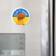 Muestra tu apoyo a Ucrania con este imán de refrigerador que incluye recorte redondo de la bandera de Ucrania con puño inflamado y "Gloria a Ucrania", uno de los eslóganes más populares del país, en texto curvo.