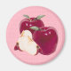 2 Manzanas con 2 rebanadas de manzana en un fondo rojo a cuadros están en este imán. Genial para el amante de la manzana.