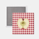 Este Apple Magnet presenta una manzana dibujada por el ratón con un fondo de gingham rojo. Cuidada para su campo, casa de campo o cocina de granja.