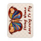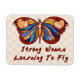 Celebra el crecimiento de tu poder emergente con esta mariposa multicolor con el cuerpo de una mujer en el centro y las palabras "Mujer fuerte aprendiendo a volar".