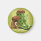 Cute cachorros de malabarismo y botas de lluvia de puntos de polka verde, pintadas por la artista Maryline Cazenave.