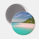 Magnet with a beautiful photograph. A scenic tropical beach with aquamarine water and a white sandy beach with a lush forest in the back.