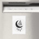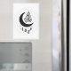 A bold crescent moon anchors the design, surrounded by a delicate mandala pattern and hanging lanterns and stars. The monochrome palette on a dark textured background gives the piece a luxurious, gallery-style feel that fits perfectly in contemporary interiors.
