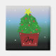 Un árbol de Navidad adornado con una estrella dorada encima. Una olla roja sombreada con el mensaje "Alegría" encima. Un ambiente nocturno suave.