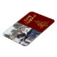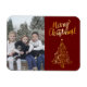 Feliz Navidad dorada en letra de guión con un árbol de Navidad abstracto dorado sobre un sólido rojo profundo en este sofisticado diseño. Sube tu propia foto vertical.