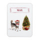 ¡Este perro chihuahua puede ser pequeño pero es grande en aventura! Este perro está de pie y esperando ansiosamente a los Navidades a la sombra de un árbol de Navidad decorado.
