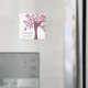 Un bonito diseño con un gran árbol lleno de corazones en tonos rosados y violetas con hojas verdes suaves.
