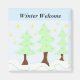 Árboles de Navidad verde suave con adornos de bola azul y suelo cubierto de nieve. Un buen mensaje de 'Bienvenida al Invierno'