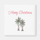 Imán de Navidad Tropical Beach Merry, con un ilustracion de palmeras y tipografía de escritura. Con letras de personalizable, agrega su propia información. Una adición festiva a su cocina de vacaciones.