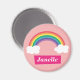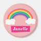 Agilizar la vida de su hijo con este colorido imán infantil para la nevera donde pueden incluir sus propias notas o dibujos. ¡Contiene nubes blancas con un arco iris que atrapa los ojos! Este botón le recordará a los pequeños que se mantengan brillantes y animados. Un maravilloso mini regalo para chicas. Personalice con el nombre del chica en el espacio disponible. El fondo se puede cambiar a color de elección en el modo de personalización.