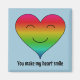 Un corazón sonriente arcoiris y el texto romántico "Tu haces sonreír mi corazón" - este es un diseño acerca del amor verdadero y la felicidad. Haga clic en el botón "Personalizar" para elegir su color de fondo favorito o utilice el azul pálido preseleccionado.