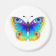 Arcoiris, realista, de dibujo artístico, colores brillantes mariposa pavo real con alas detalladas texturizadas sobre fondo blanco. Mariposa arcoiris.