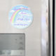 Hermoso imán Save the Date con cielos azules y un suave diseño arcoiris para enviar a todos sus invitados a anunciar su ceremonia de compromiso!