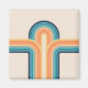 Ilustracion de estilo retro con arcos coloridos (amarillo, azul, naranja, azul marino, beige, turquesa) sobre fondo beige. Puede agregar su nombre/monograma para personalizar el elemento.