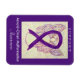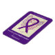 La malformación Arnold-Chiari usa una cinta morada para apoyar la toma de conciencia por su causa. El imán personalizado presenta un imán de arte de ángel de la guarda de la cinta de conciencia morada con el mensaje "Apoyen la conciencia de malformación de Arnold-Chiari". El arte de la cinta de ángel de la conciencia púrpura se puede personalizar con mensajes personalizados para hacer imanes de mercancías de gran causa para recaudadores de fondos, regalos de concientización u otros eventos o ocasiones de causa especial.