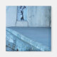 Urbanidad de tonos azules - fotografía de un paso subterráneo entre una carretera y el puerto en Wellington, Nueva Zelanda. Escondido en un panel debajo del puente hay un pequeño trozo de graffiti estilo Banksy que muestra a una mujer con un vestido largo, pañuelo en la cabeza y un delantal con un tanque con "C" encima.