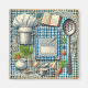 Imán Artículos de cocina de época en manteles azules