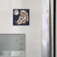 Añada un toque de encanto cósmico felino a sus pertenencias con este Pegatina catalán. Con un adorable gato naranja vestido con un bonito uniforme astronauta, este imán es perfecto para los amantes del gato y del espacio.