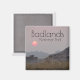 El sol se está poniendo en el Parque Nacional Badlands. El sol es de un bonito color rosa con un cielo morado claro.