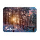 Imán Atardecer en un bosque de pinos nevado con rayos s